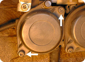 キャブのダイヤフラムが劣化したり、損傷があるとピストンバルブが開かなくなり、エンジン不調の原因になります。 バイクがまったくノーマルでアクセルをそこそこあけているときや全開付近の調子が著しく悪く、 なおかつ今までバイク屋まかせで一度もキャブをいじったことがなければジェットニードルの調整を疑ってみましょう。 ひどいと規定値をまったく無視したセッティングになってます。 もしチェックしてみてここが狂ってたらパイロットスクリューの調整も怪しいのでそちらも疑ってみることをお勧めします。 (キャブパイロットスクリュー調整) ここでは確実な作業のためキャブをおろしてますが、ダイヤフラムのトップキャップのネジは外部からでも外せそうな気もします。 できそうならばチャレンジしてみる価値はあると思います。キャブ外すのは面倒臭いですから。 |